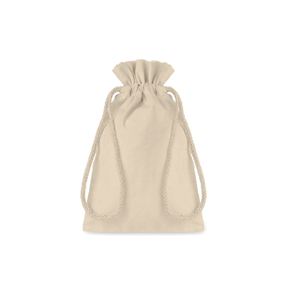 Kis pamutvászon zsinóros ajándéktasak. 105 g vastag anyag.