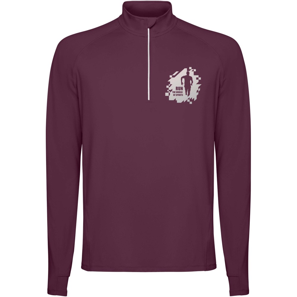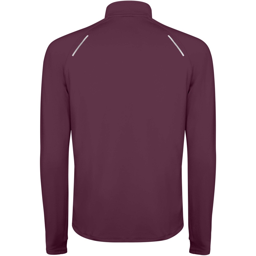 Férfi hosszúujjú technikai raglán pulóver. Gallér fordított félcipzárral, fényvisszaverő részletekkel. Erősített varrások. Mandzsetta hüvelykujj nyílással. Fényvisszaverő részletek a háton. A hátul enyhén hosszabb, mint elől. Meleg, bolyhos belső anyag.