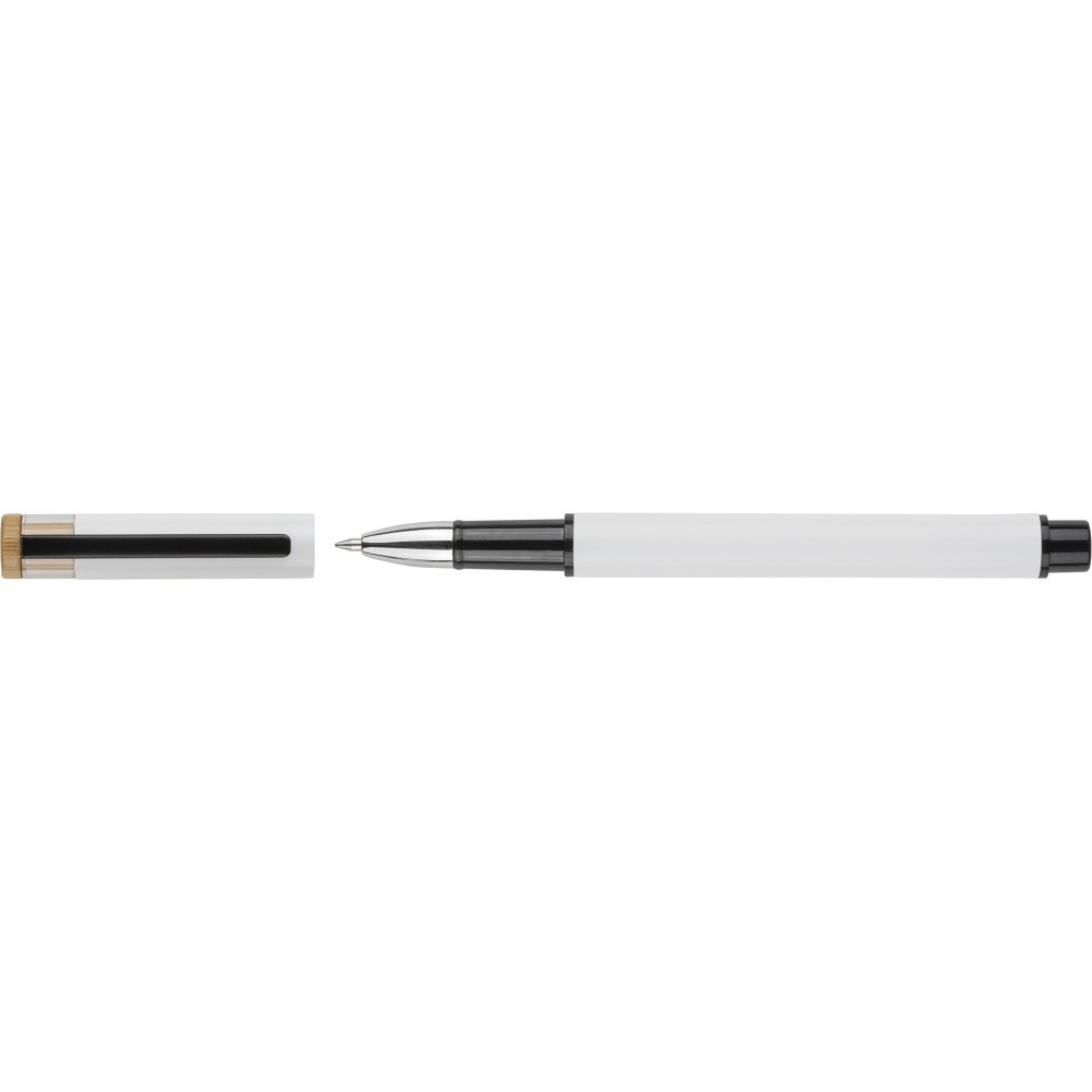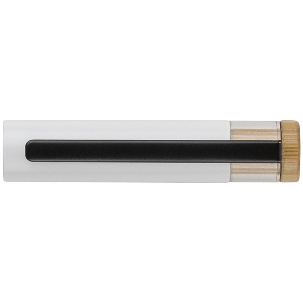 Újrahasznosított alumíniumból készült, lakkozott tollszett golyóstollal és rollerball tollal. A golyóstoll bambusz nyomógombbal, rPET díszítéssel és fém klippel rendelkezik, míg a rollerball toll bambusz/rPET kupakdíszítéssel és hozzá illeszkedő klippel. A tolltesten gravírozott recycled (újrahasznosított) alapanyagra utaló logó található mindkét toll esetében. A golyóstoll kb. 700 méter, a roller toll kb. 500 méter íráskapacitású, mindkettő kék színű tollbetéttel. Színes, újrahasznosított kartonból készült ajándékdobozba csomagolva.