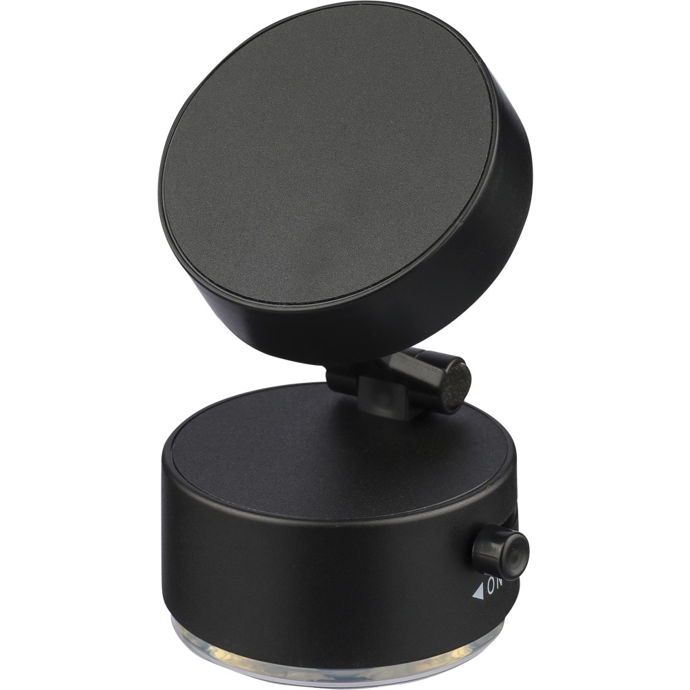 Újrahasznosított ABS anyagból készült MagSafe telefontartó tapadókorongos talppal és rögzítő funkcióval sima felületeken való használathoz. Összecsukható kialakítással és fém gyűrűvel. Az on/off jelölés között gravírozott recycled (újrahasznosított) alapanyagra utaló logó található. Barna kartondobozba csomagolva.