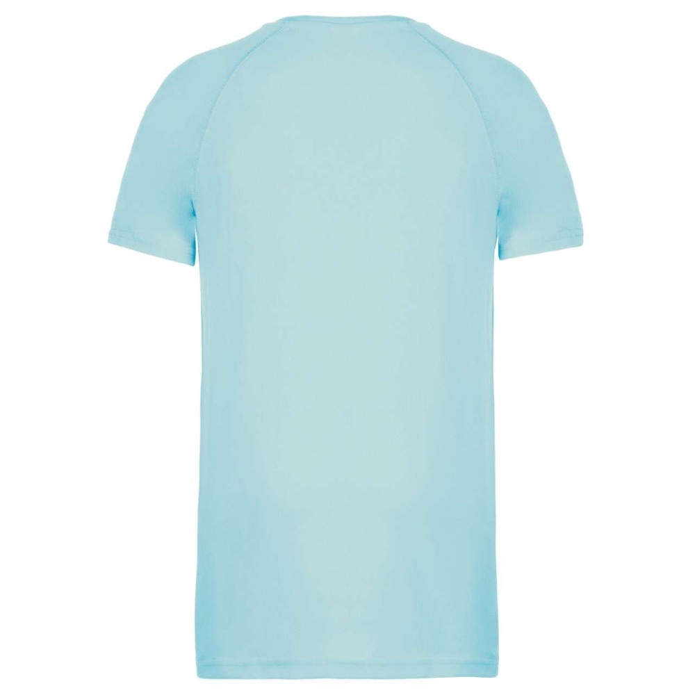 100% poliészter. Gyorsan száradó, könnyű anyag. Szalagerősített nyakvonal, raglán ujjak, duplatűzött szegések. 140 g/m2. 6/8 évestől 12/14 éves méretig.