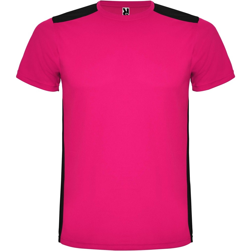 Roly Detroit rövid ujjú uniszex sportpóló, fuchsia, solid black
